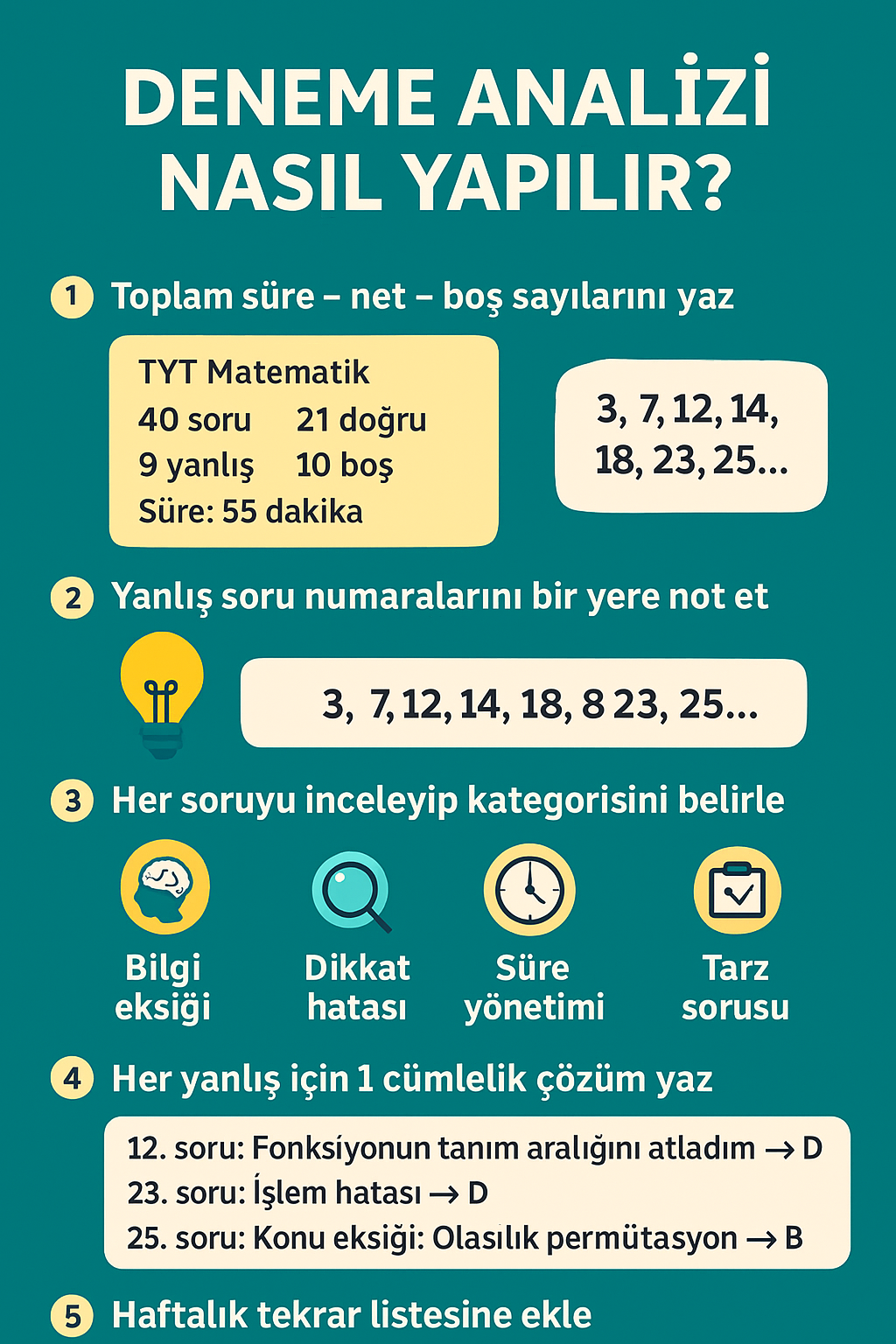 ✔ 4. Bir sonraki denemede o konu özellikle takip edilmeli